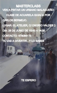 Masterclass - Clase de Acuarela dirigida por Carlos Bermejo - 28 de junio de 10.00 a 14.00 horas en El Atelier (C/ Osorio Valdés, 2)