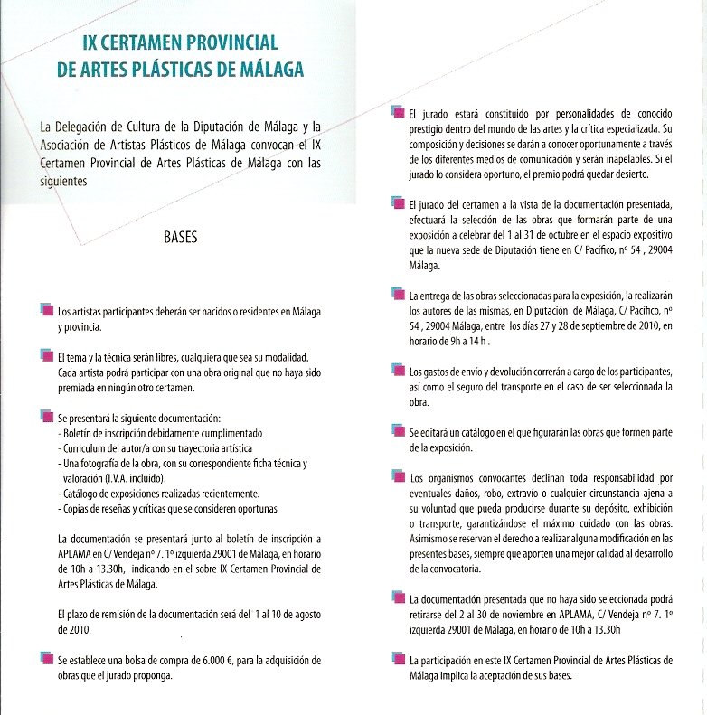 BASES DEL IX CERTAMEN PROVINCIAL DE ARTES PLÃSTICAS DE MÃLAGA