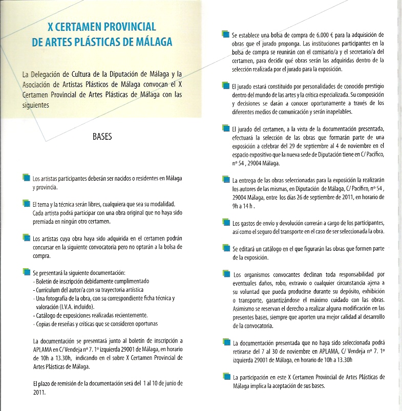BASES DEL X CERTAMEN PROVINCIAL DE ARTES PLÃSTICAS DE MÃLAGA ORGANIZADO POR APLAMA Y DIPUTACIÓN