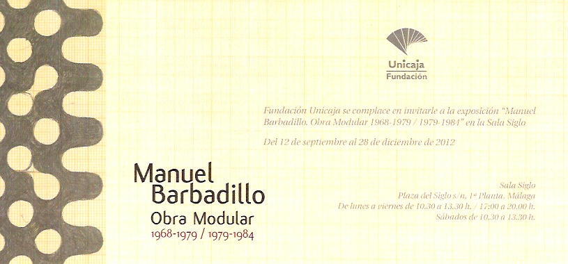 MANUEL BARBADILLO-OBRA MODULAR (1968-1979/1979-1984) del 12 de septiembre al 28 de diciembre de 2012 en la Sala Siglo (Plaza del Siglo s/n, 1ª planta). Inauguración miércoles 12 de septiembre a las 12.00 horas.