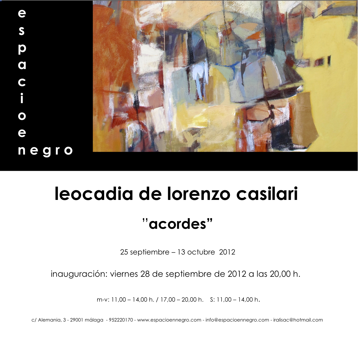 Leocadia de Lorenzo Casilari en Espacio en Negro del 25 se septiembre al 13 de octubre. Inauguración viernes 28 de septiembre a las 20.00 horas.