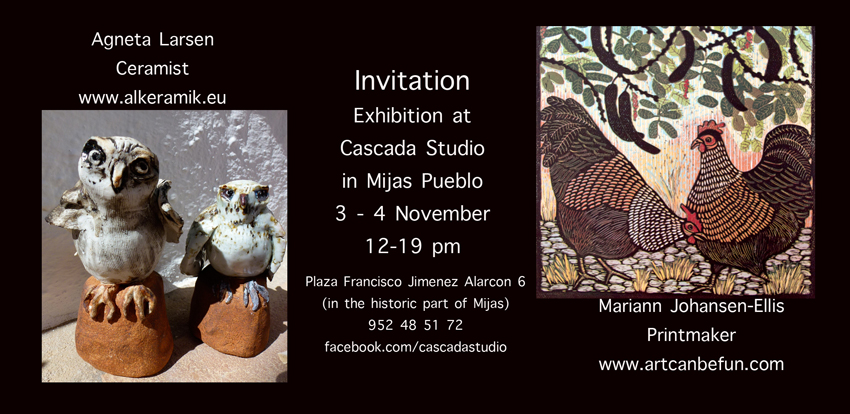 Exhibición de Mariann Johansen-Ellis y Agneta Larsen en Cascada Studio (Mijas Pueblo) el 3 y 4 de noviembre de 12:00 a 19:00 horas.