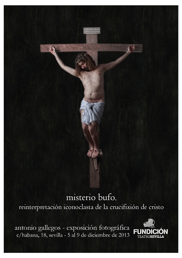 La obra de teatro ‘El profeta loco’ del director Eduardo Velasco, y la colección fotográfica ‘Misterio bufo’(stop-web-listado) de Antonio Gallegos coincidirán durante los dÃas 5 al 9 de diciembre en la Sala La Fundición (Sevilla), y del 12 al 14 de diciembre en la Sala La Cochera Cabaret (Málaga), para mostrar una reinterpretación iconoclasta de Jesucristo, planteando una visión contemporánea y una reflexión sobre su imagen y el uso que de su figura ha hecho la iglesia. Ambos autores se apoyan en la reflexión, el humor, la sátira y la iconografÃa plástica de la crucifixión.